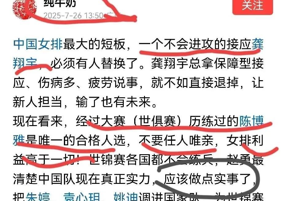 有球迷幻想“津班七仙女”直接空降世锦赛 我翻完名单,心跳减速一半 名单已锁:李盈莹+龚翔宇带队 龚翔宇膝盖旧伤还在,但右边路只有她能接六轮一传 换谁?目前没有Plan B 陈博雅确实香:攻守平衡,后排稳定 可去年打国际赛,第一局手都在抖 王宝泉夸她“毛坯钻石”,翻译:还得打磨 至于“七仙女”大合体 等于把五个省队拆了拼乐高 国家队集训只剩四十天,谁来得及认路? 别骂教练保守 大赛不是拍综艺,试错一次就回家 中国女排输不起,更不能让年轻人背锅 梦可以做,醒来先把体能和技术攒够 哪天真能在领奖台上自拍 再约梦里七仙女同框不迟
