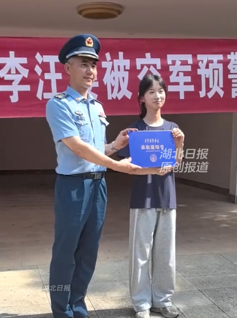 7月18日,军校的教官亲自来到她家,把录取通知书亲手交到她手上,这是空军预警学院在湖北发出的唯一一份女生录取通知书。
