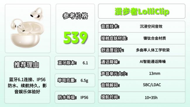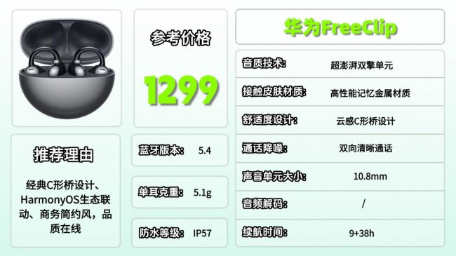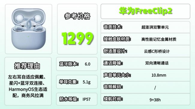推荐理由:左右耳自适应佩戴、星闪+蓝牙双连接、HarmonyOS生态适配,商务风拉满