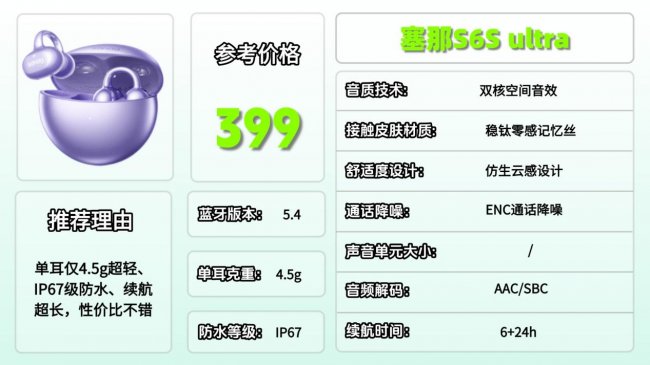 推荐理由:单耳仅4.5g超轻、IP67级防水、续航超长,性价比不错