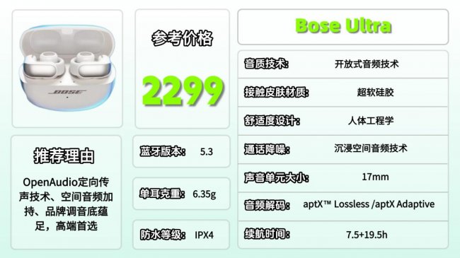 推荐理由:OpenAudio定向传声技术、空间音频加持、品牌调音底蕴足,高端首选