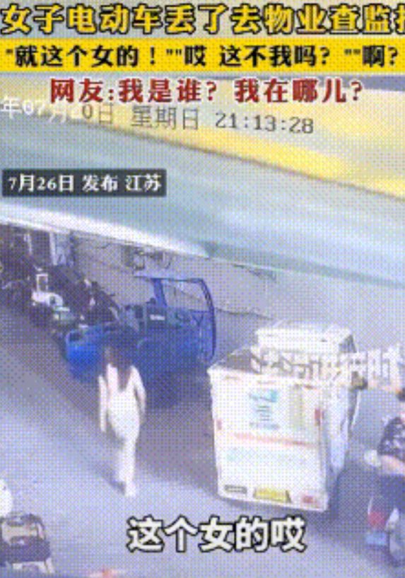 女子下楼后发现自己的电动车不见了,还以为是被人偷走了,于是赶忙前往物业调取监控。