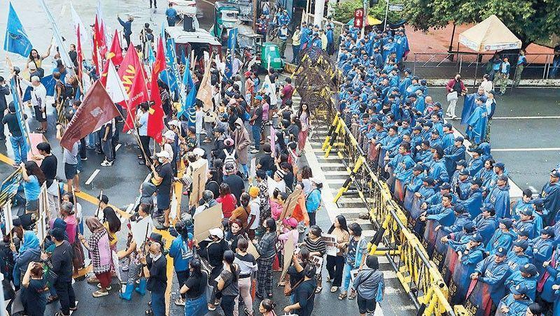 菲律宾媒体消息,在马科斯总统第四次国情咨文期间,尽管警方提前呼吁不要焚烧肖像,但反政府抗议者仍焚烧了总统和副总统的肖像,约 4000 人在雨中参与抗议,活动总体和平,无意外事件记录,约2.3 万名警察负责安保。