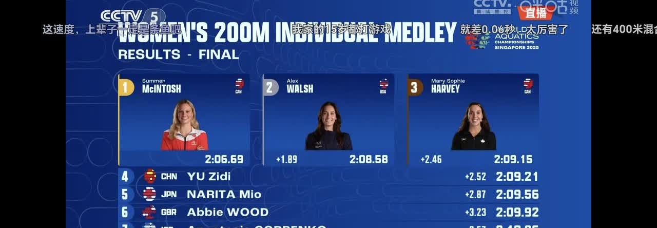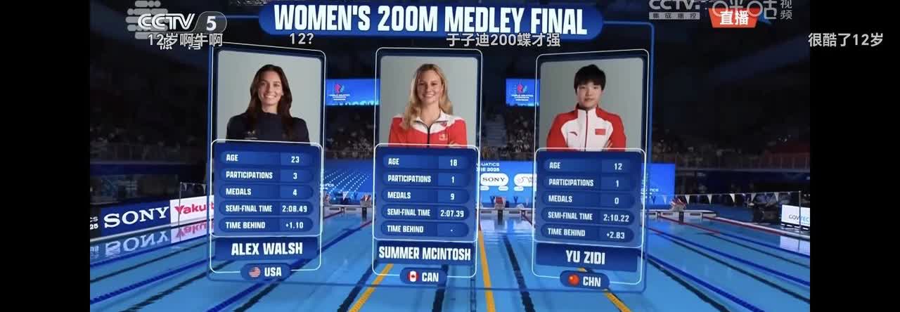天才少女12岁于子迪即将闪耀洛杉矶[呲牙]今晚世锦赛女子200混决赛,于子迪最后50米自由泳疯狂追赶从第七追到第四,仅落后第三名0.06秒,差点登上领奖台创造世界最年轻奇迹[黑线] 于子迪今年全国冠军赛每一枪都是大幅PB,这届世锦赛200混预赛2.10.22个人PB,决赛2.09.21又是大幅PB,成长速度惊人[黑线]而且还仅仅12周岁,这个年龄段简直逆天,三年后的洛杉矶15岁可以乐观期待一下🥇[呲牙][呲牙]