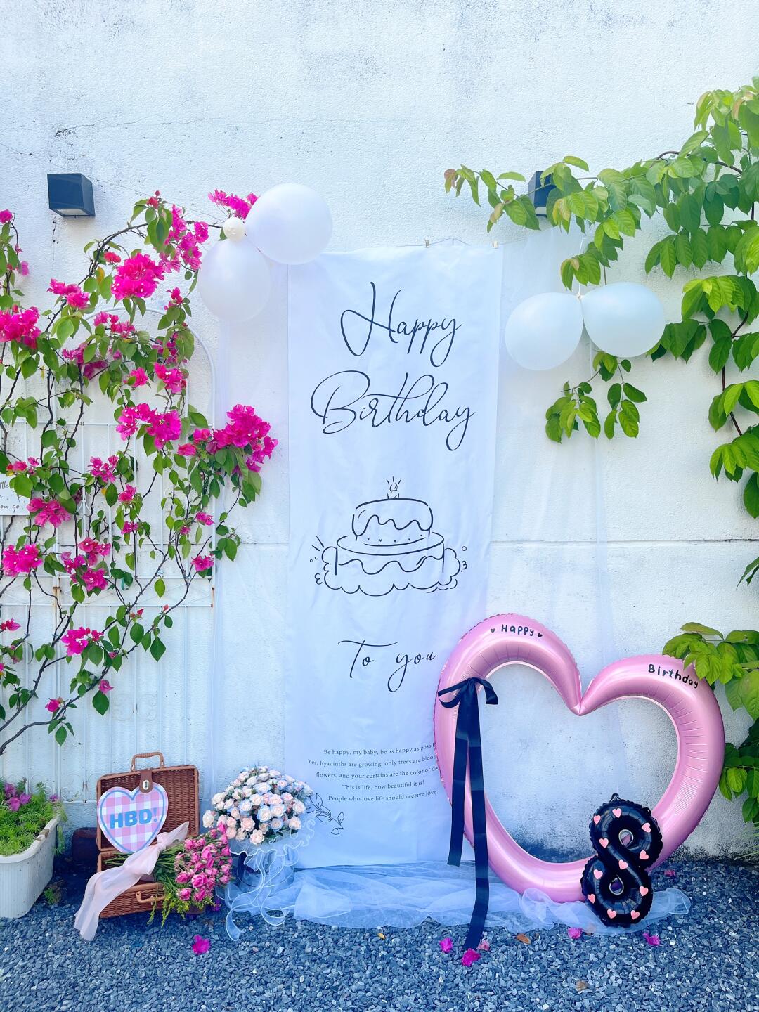 网纱背景布20r+爱心生日气球9r 超低成本拍出超级出片的美美生日照