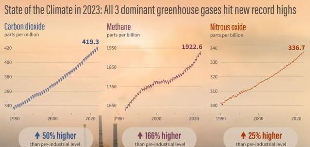 图 1 2023年3种主要温室气体排放创历史新高