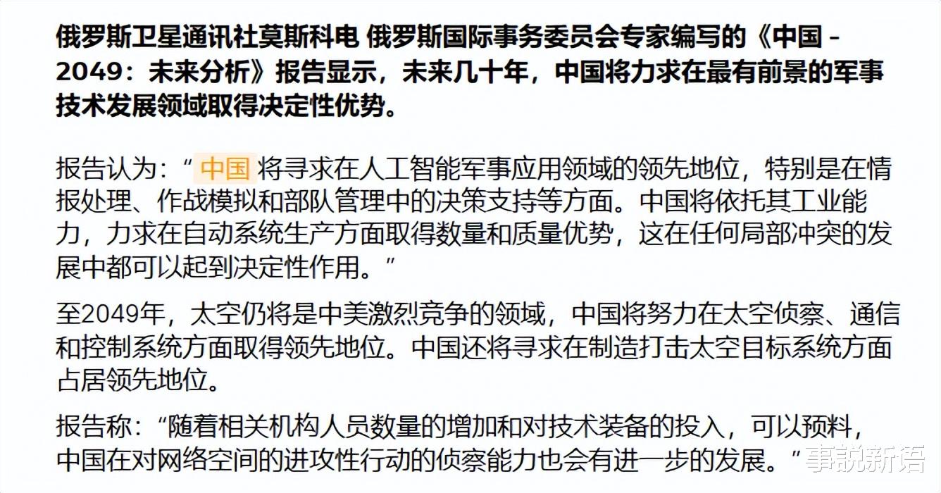 而由俄罗斯国际事务委员会多名军事分析评论家所编写的《中国-2049:未来分析》中就站在了俄罗斯的角度对中国的军事发展进行了分析。
