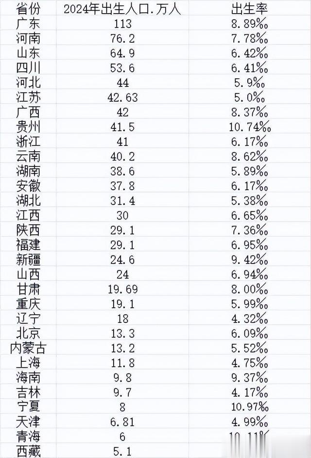 截至4月25日,31个省份2024年的常住人口数据已全部公布,哪些省份人口增长较多?哪些省份出生人口多呢?