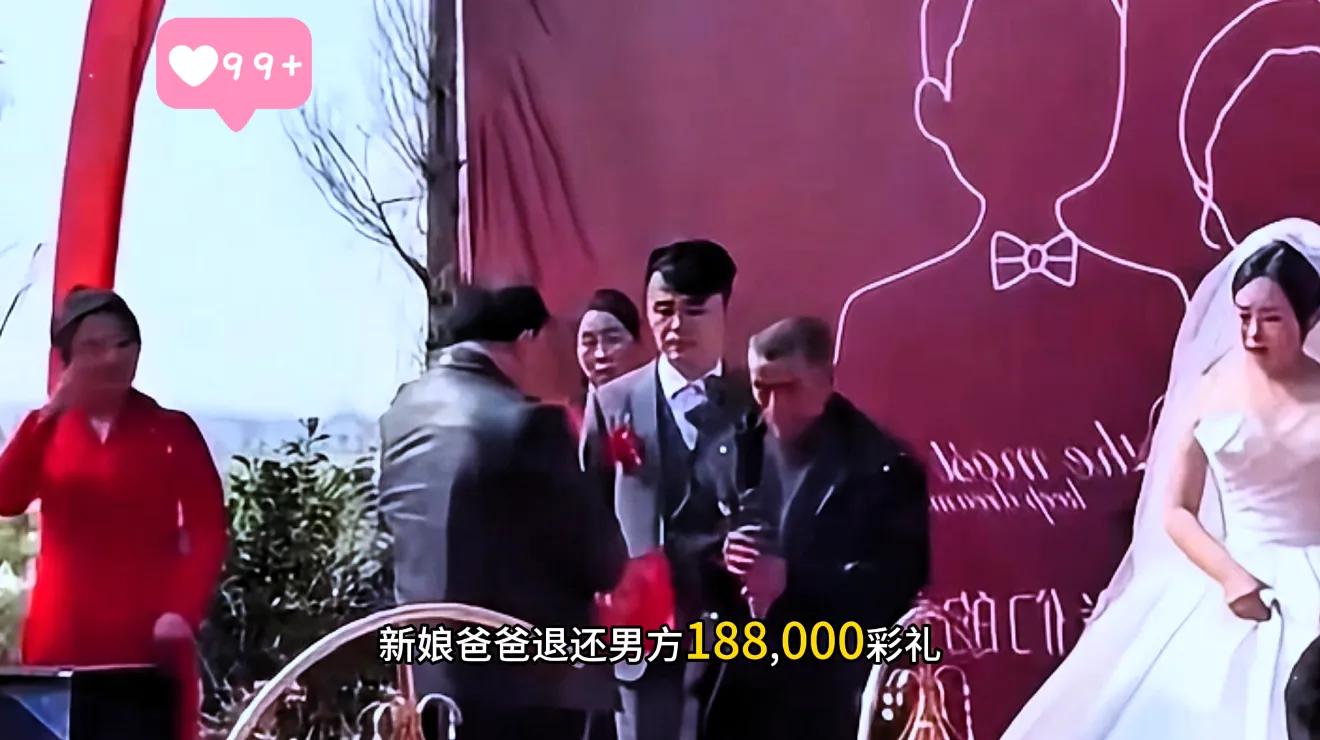 当天婚礼进行到彩礼环节,男方按习俗送上18万8千元彩礼,这本是不少地方公认的“体面数字”。可新娘爸爸的操作,直接让全场亲友又惊又暖。他当着所有宾客的面,把整笔彩礼悉数退回,仅从中抽出一张百元钞,轻声说“意思到了就行”。没有丝毫犹豫,没有半点计较,随后他郑重告诫在场的年轻人:不要被钱财蒙蔽自己的婚姻。一句朴实的话,没有华丽辞藻,却字字戳心,现场掌声雷动,不少人当场红了眼眶。