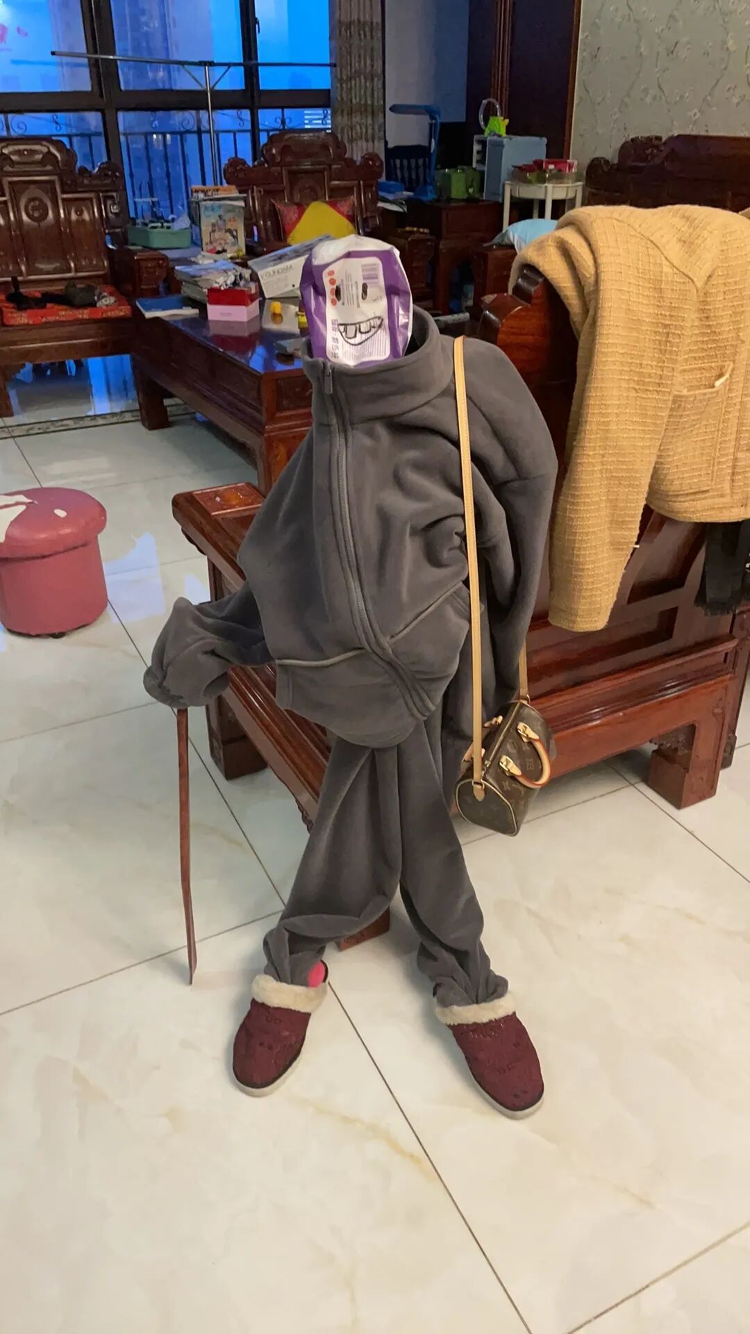 2.换出来的裤子叫他收拾好,结果直接穿枕头上了,这是当枕头套吗?