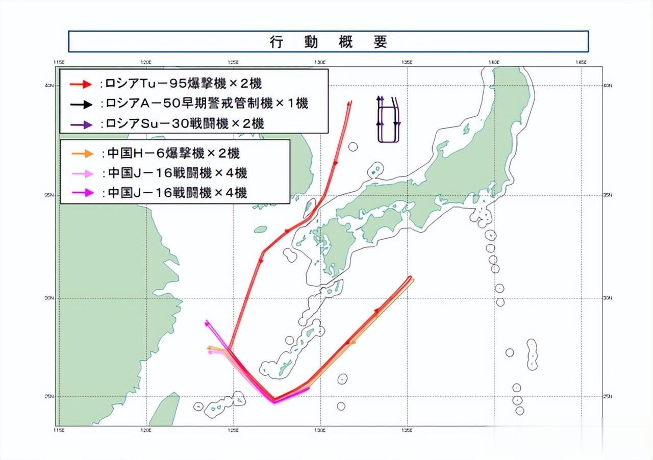 13架战机绕日本列岛飞一圈,小泉进次郎急眼了12月9日这天,日本航空自卫队的雷达屏幕上,密密麻麻出现了十几个光点。从日本海开始,2架俄罗斯图-95战略轰炸机一路往南飞,到了东海上空跟2架中国轰-6轰炸机会合。这还没完,8架歼-16战斗机随后加入护航,整个编队穿过冲绳本岛和宫古岛之间的海峡,一路飞到四国外海的太平洋上空。