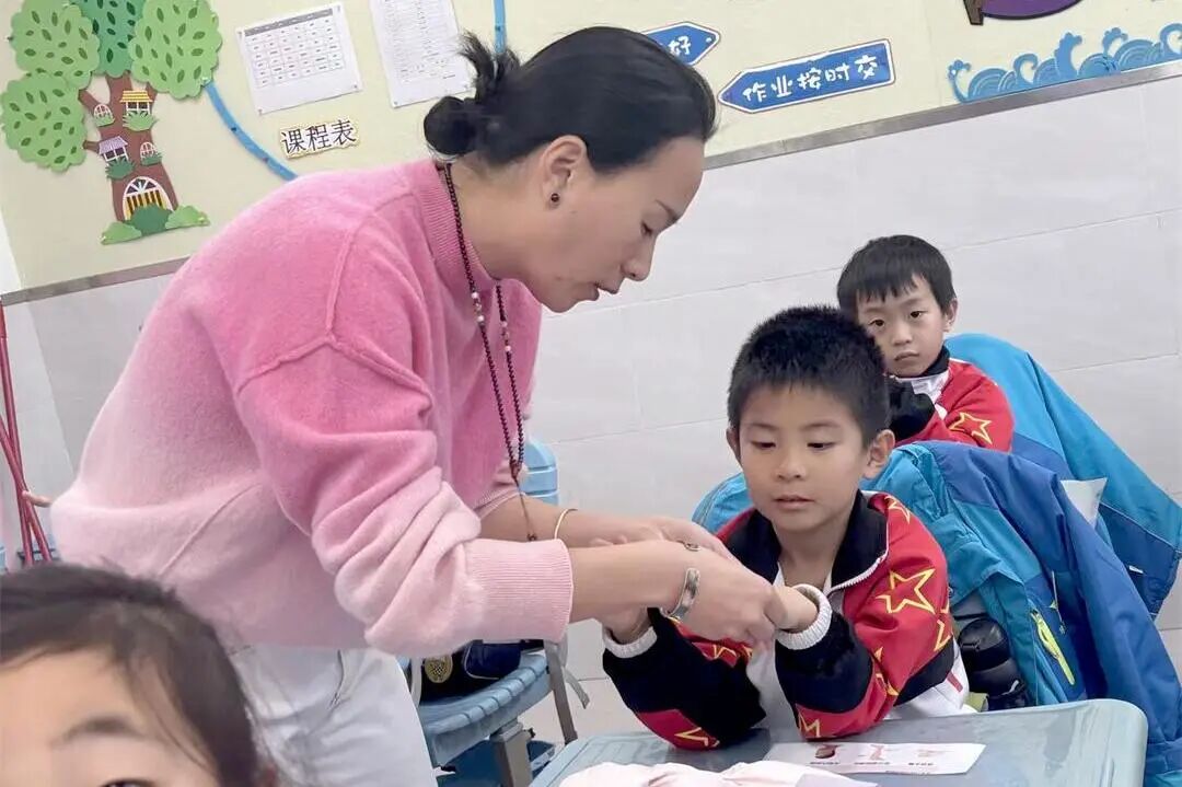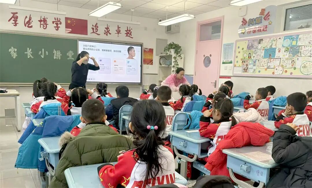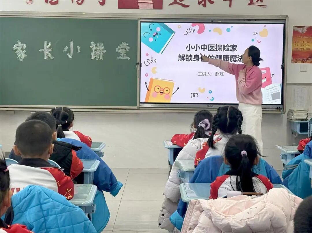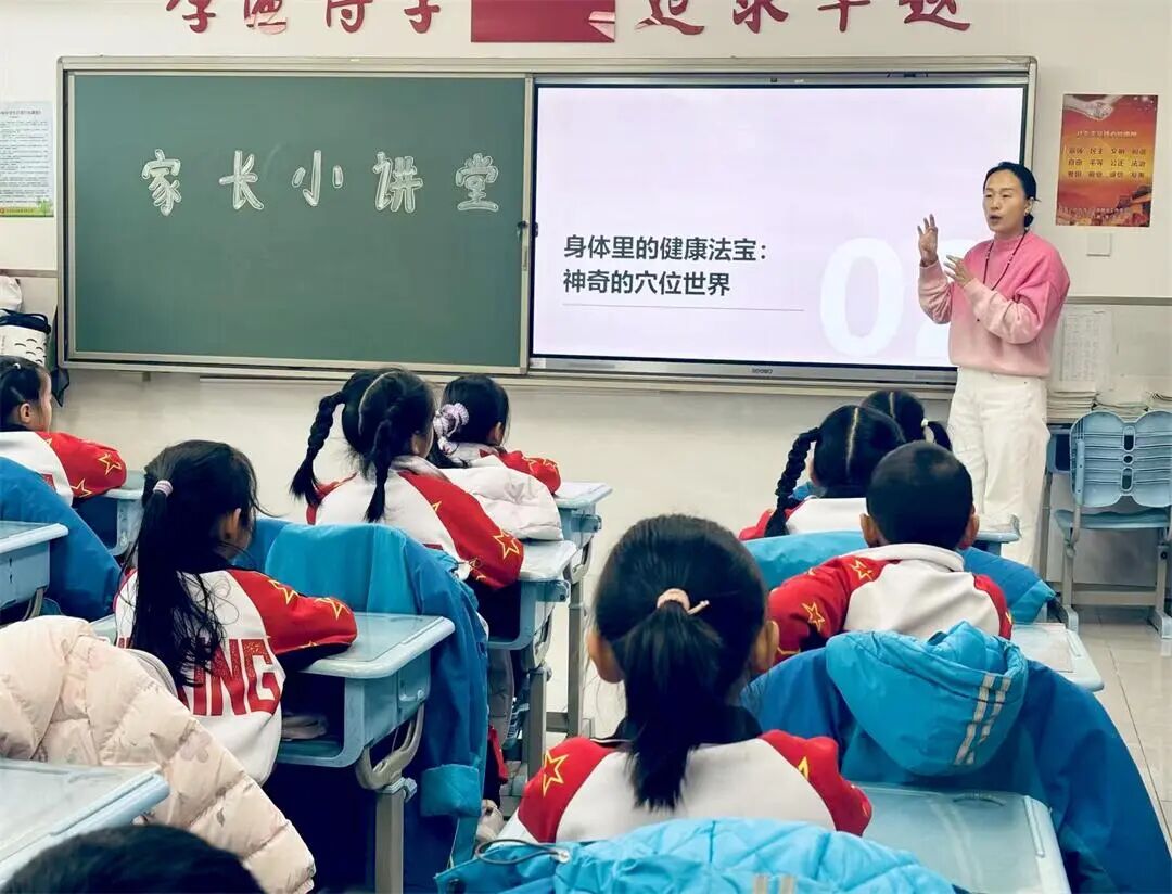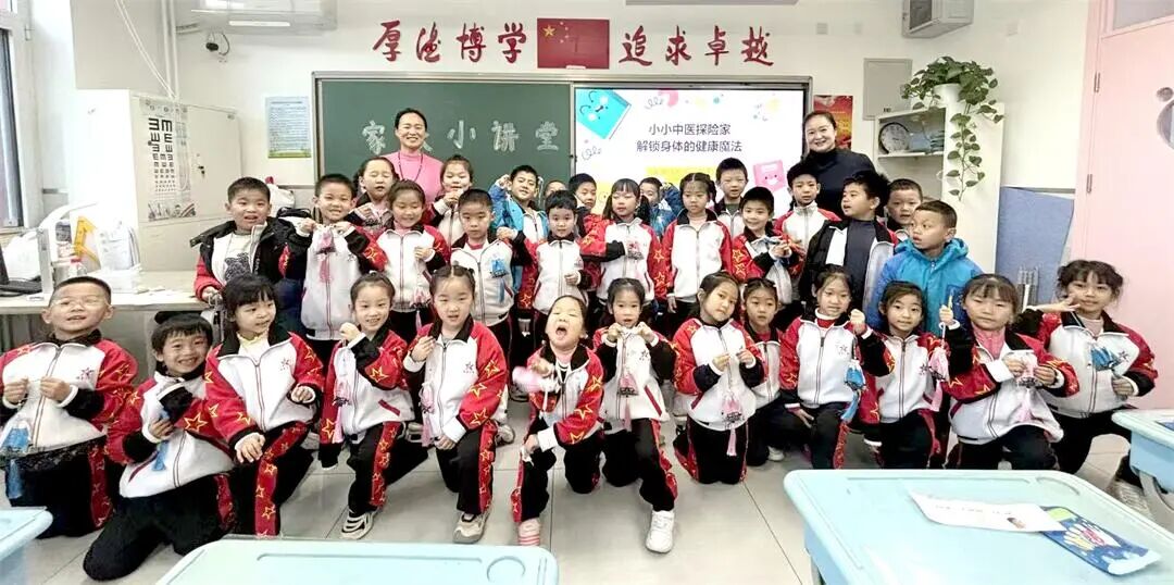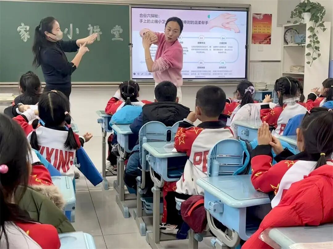 近日,北京市海淀区培星小学一年级(3)班的教室里热闹非凡,康悦临妈妈赵烁与余楚然妈妈王莹携手带来的中医小常识课程,让孩子们在欢声笑语中沉浸式感受传统文化的魅力。30分钟里,穴位实操、动画科普、手工DIY轮番上阵,不仅教会孩子实用健康技能,更搭建起家校共育的温馨桥梁。