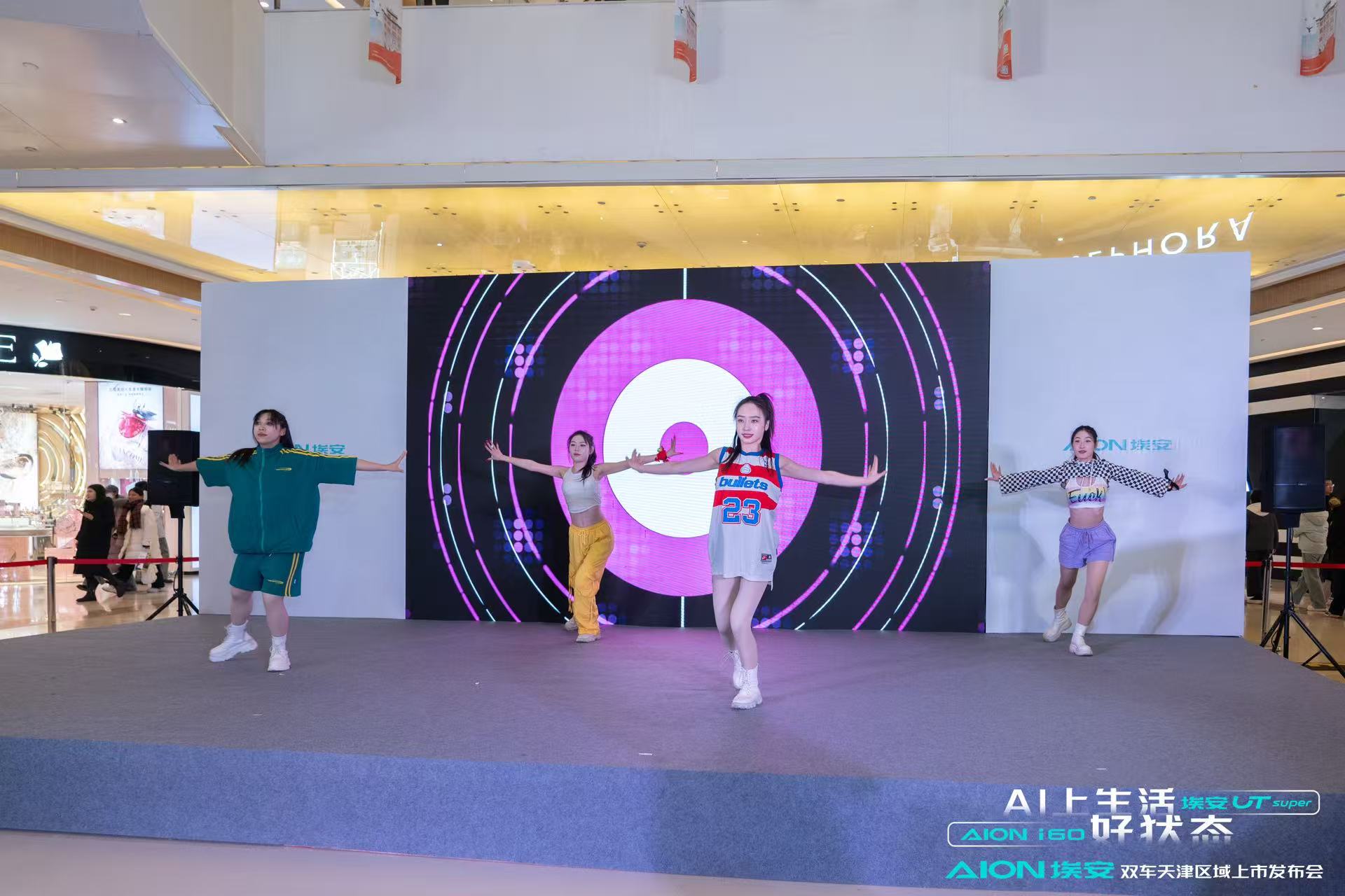 动感舞蹈秀点燃活动序幕后,主持人介绍了发布会主题及两款新车的核心定位。广汽埃安天津战区经理何伟何总登台致辞,不仅表达了品牌深耕天津市场、为消费者提供高价值出行选择的坚定承诺,更传递了"Ai上生活好状态"的品牌理念。