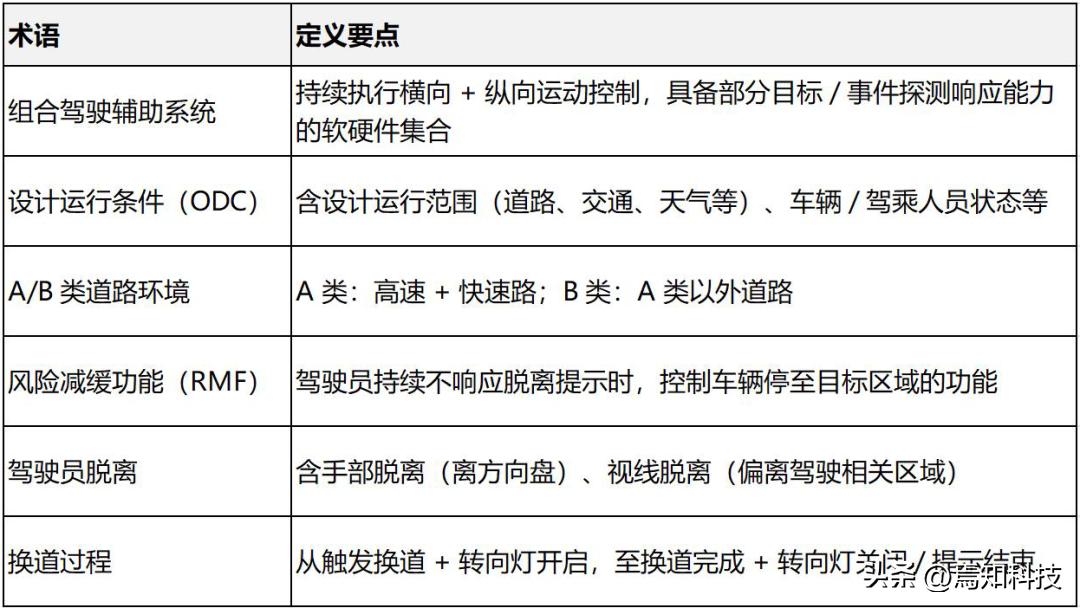 核心内容:系统类别、驾驶员责任、ODC 边界、激活 / 退出操作、脱离检测方式、事故应急处置等。