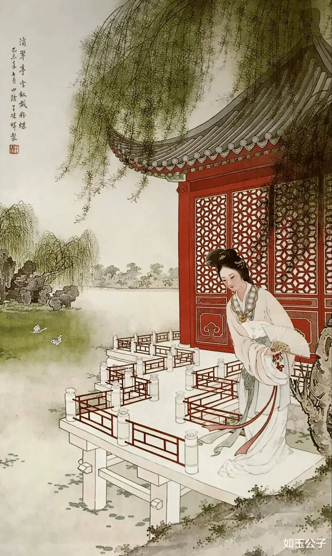 书中第二十七回中写到,宝钗在滴翠亭外扑蝶,哪知那一双蝴蝶忽起忽落,来来往往,穿花度柳,快飞过河去了。