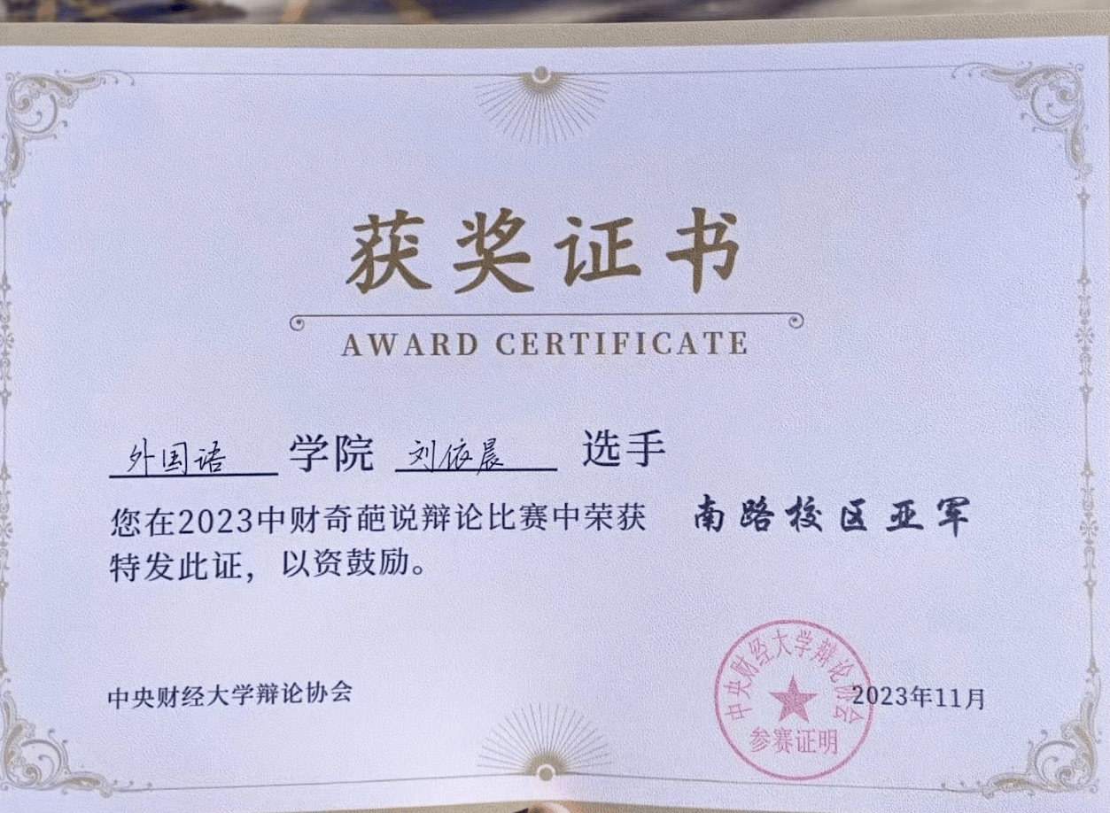 刘依晨就读于中央财经大学国际本科商务管理专业,在校期间她积极投身各类社团活动与学术竞赛。在商业模拟挑战赛中,她将课堂所学的商务管理知识转化为实战策略,于团队协作、市场分析与路演展示中锤炼解决实际问题的能力;辩论赛则训练了她的逻辑思维与即时表达能力,在观点交锋中深化对经济、社会、文化等议题的多元理解。