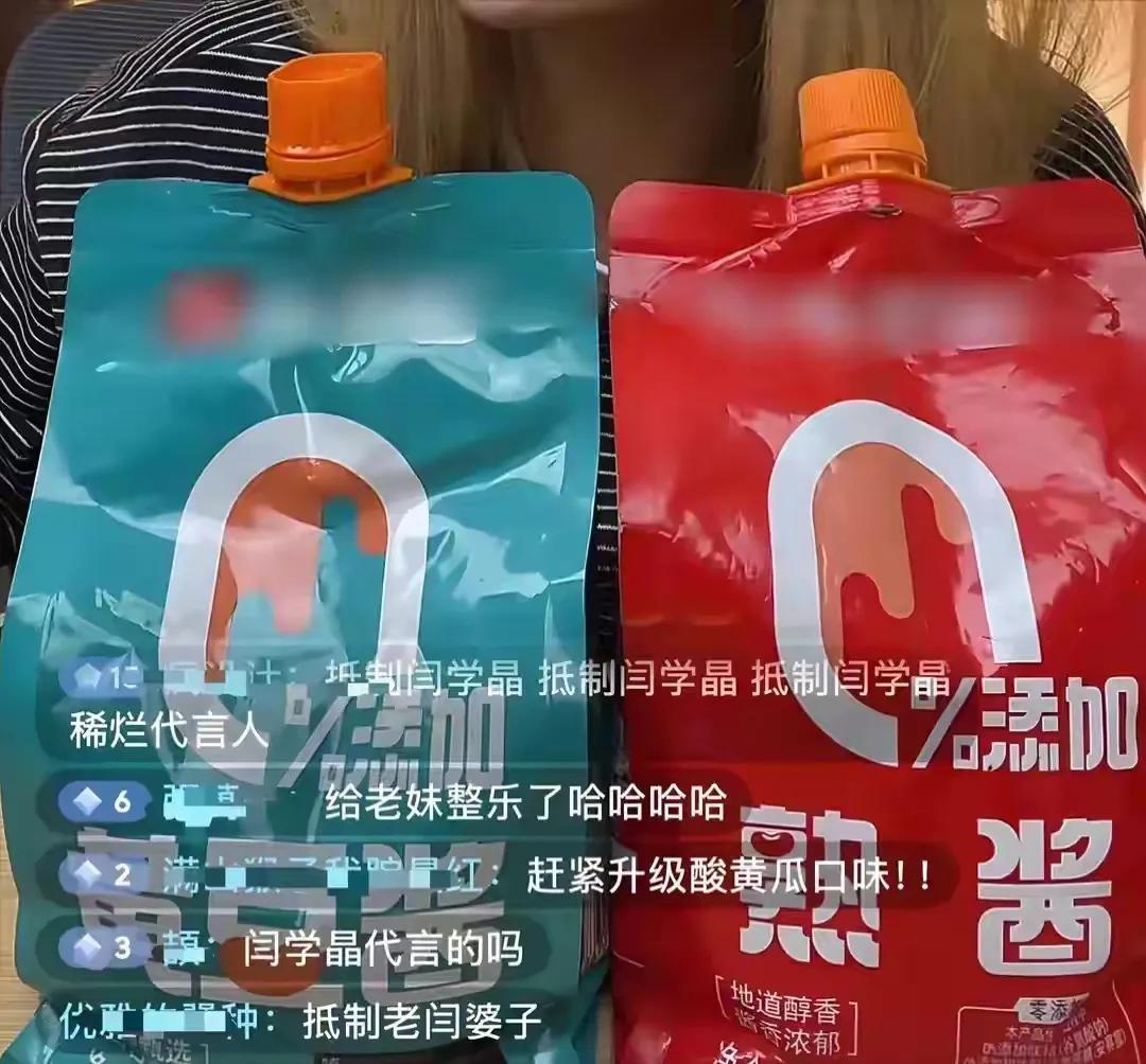 此前,她所代言的佐香园,就遭到网友的群起抵制,其中有一个视频,就是博主将有闫学晶肖像的该产品大酱直接扔进垃圾桶。