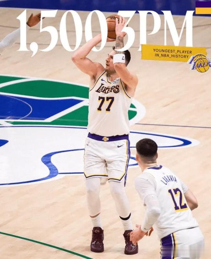 首节比赛,东契奇三分3中2得到12分3篮板4助攻,迎来生涯第1500记三分里程碑纪录,东契奇(26岁330天)超越塔图姆(26岁362天)成为NBA历史最年轻投进1500个三分的球员。