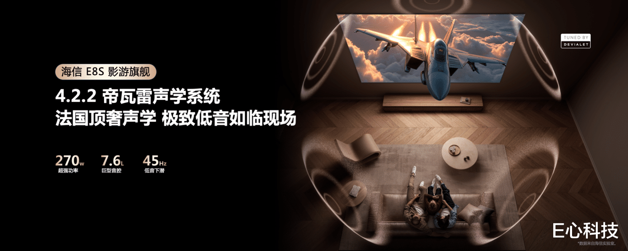 音质方面,搭载法国顶奢帝瓦雷4.2.2多声道声学系统,270W超强功率搭配7.6L巨型音腔,实现低至45Hz澎湃低音,无需外接回音壁即可构建影院级三维立体声场,观影时声临其境,游戏中能精准捕捉脚步声、枪声方位,助力电竞操作升级。