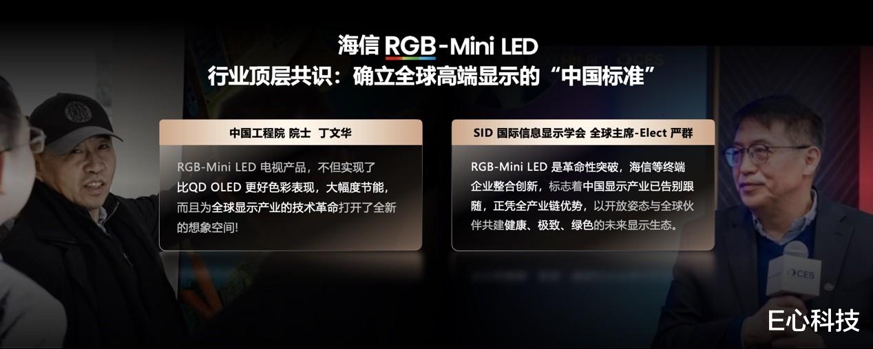 国际信息显示学会(SID)全球总裁严群也给予高度评价:“RGB-Mini LED技术是革命性突破,海信等终端企业整合创新标志着中国显示产业已告别跟随,正凭全产业链优势,以开放姿态与全球伙伴共建健康、极致、绿色的未来显示生态。”
