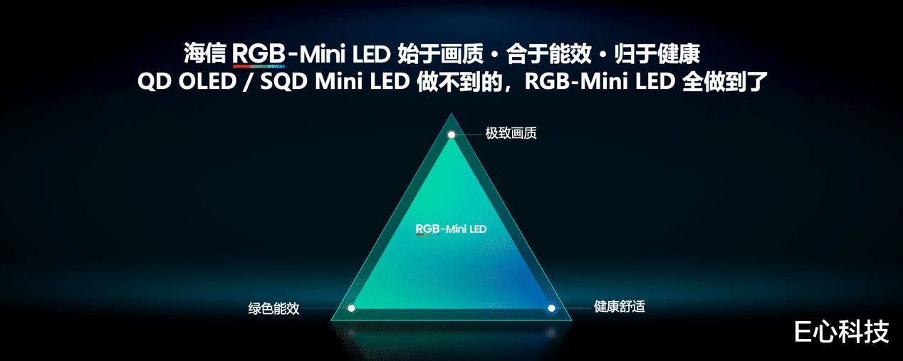 海信E8S的核心优势,源于RGB-Mini LED技术的代际突破,其用户价值集中体现在画质、能耗、健康三大核心维度。
