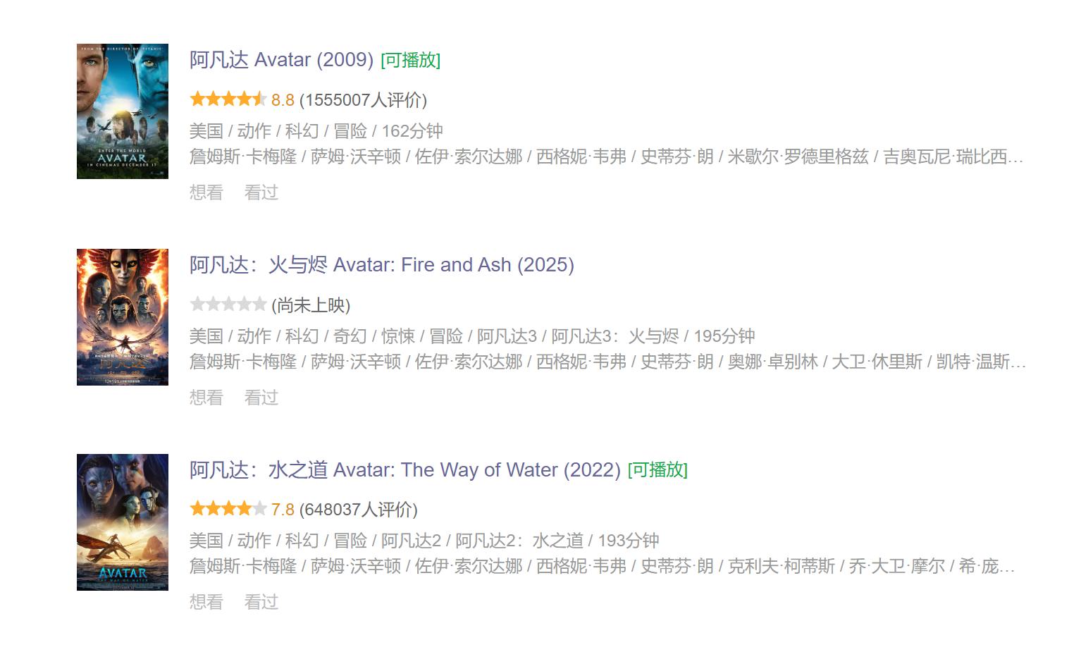 《阿凡达水世界》就差了一个档次,虽然豆瓣和IMDb评分也不低,但整个评分一直维持下滑状态。