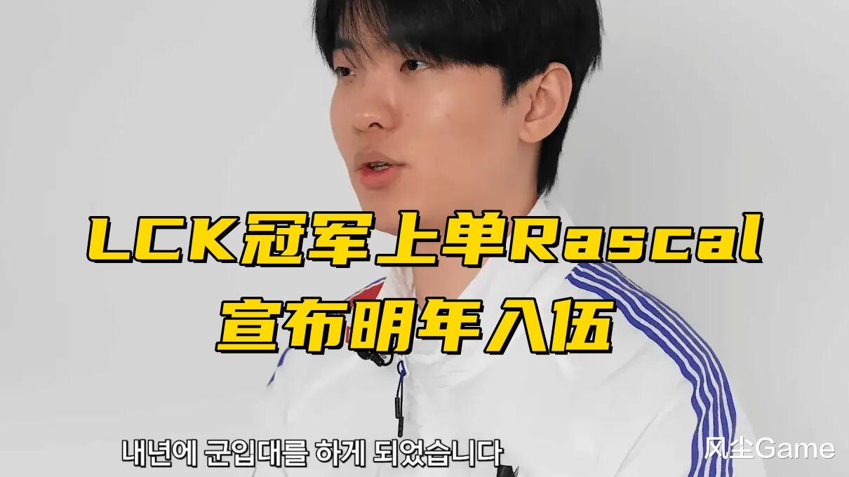 Rascal在确定离队之后,在告别视频中,宣布了自己的动向,因为服役时间将近,哥明年将会入伍暂离赛场,不过哥已经放话了:服完兵役之后,还会继续挑战职业,好家伙,你也跟Deft一样,还要舞一段时间啊,今年LCK赛区,要入伍的选手,还有世界冠军上单Nuguri、下路Deft。