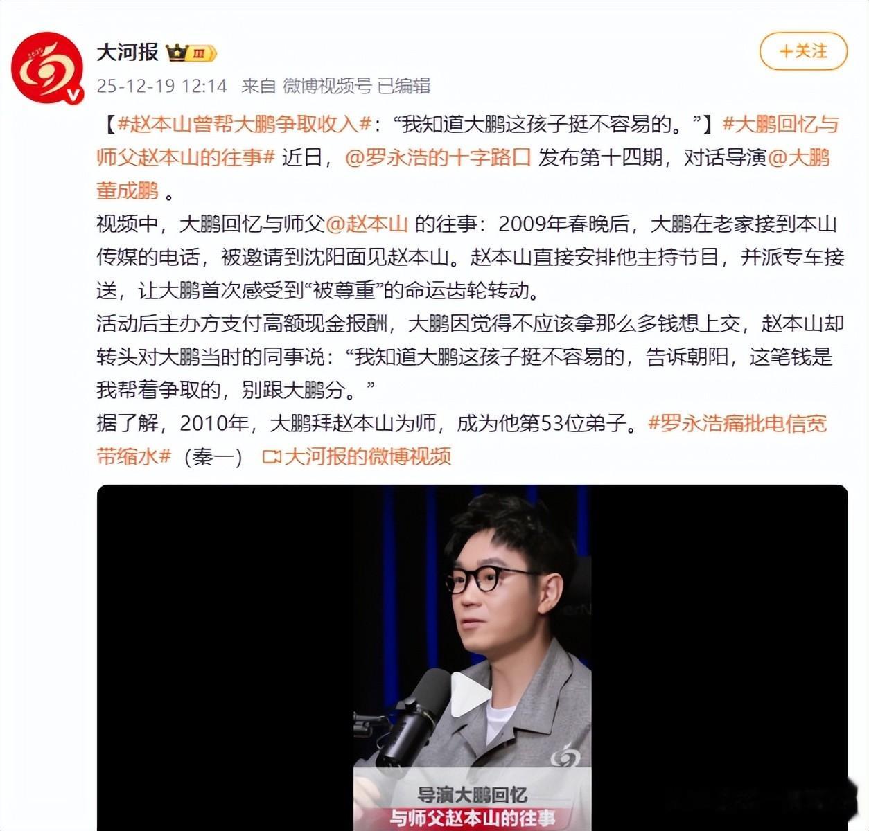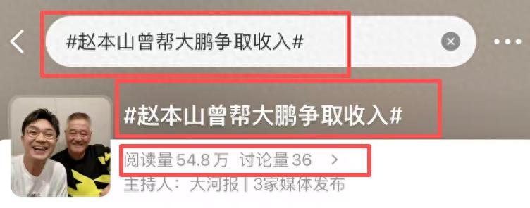 热搜突然被 “赵本山曾帮大鹏争取收入” 霸屏。