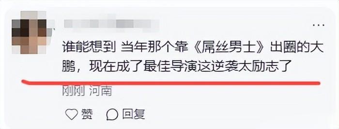 网友感叹 “谁能想到 当年那个靠《屌丝男士》出圈的大鹏,现在成了最佳导演这逆袭太励志了”。