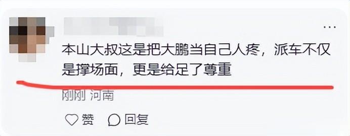 网友评论 “本山大叔这是把大鹏当自己人疼,派车不仅是撑场面,更是给足了尊重”。