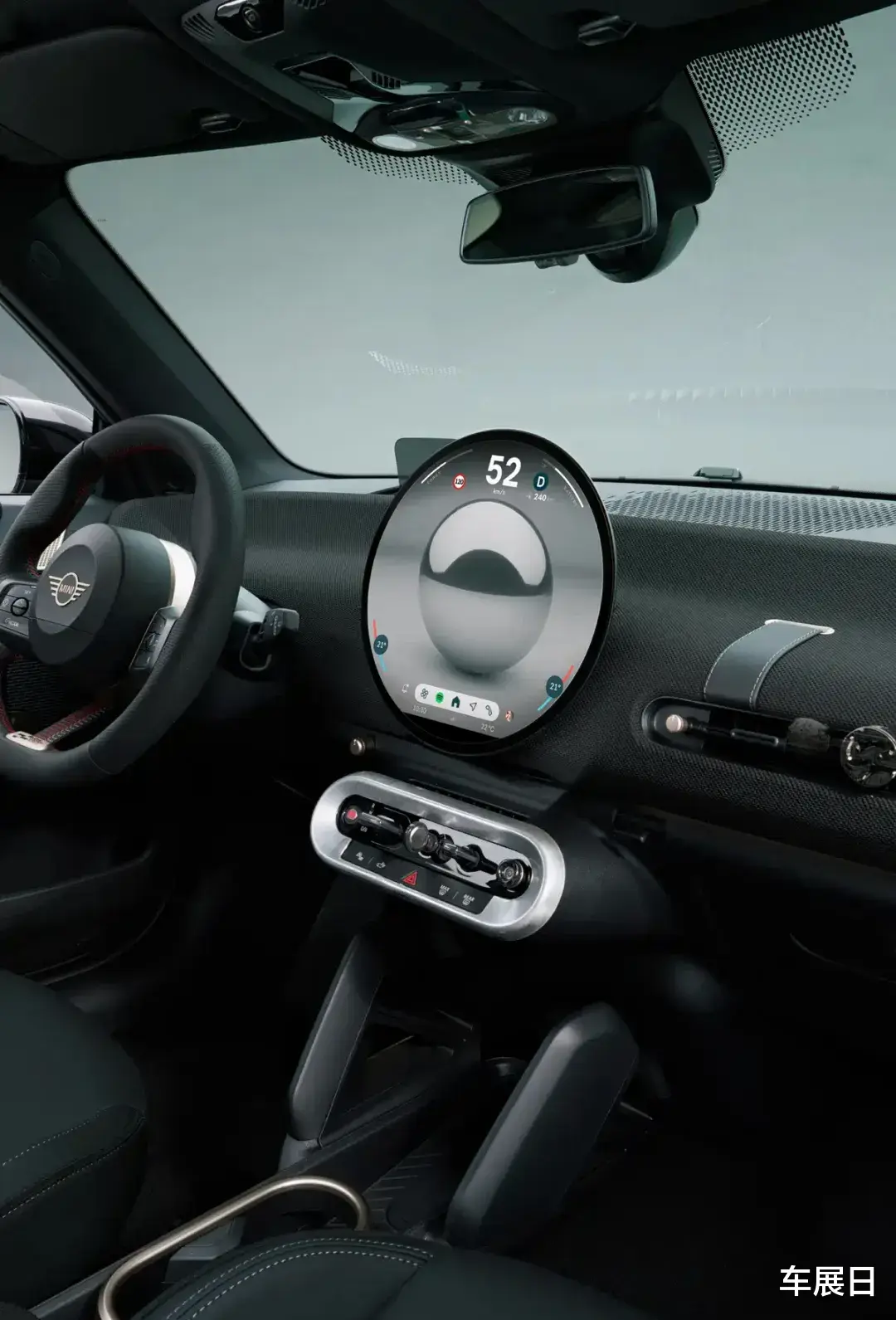 内饰方面,燃油版采用红黑配色搭配赛旗饰面,还有JCW同款运动座椅;电动版首次采用全黑内饰,搭配Vescin材质黑色座椅。