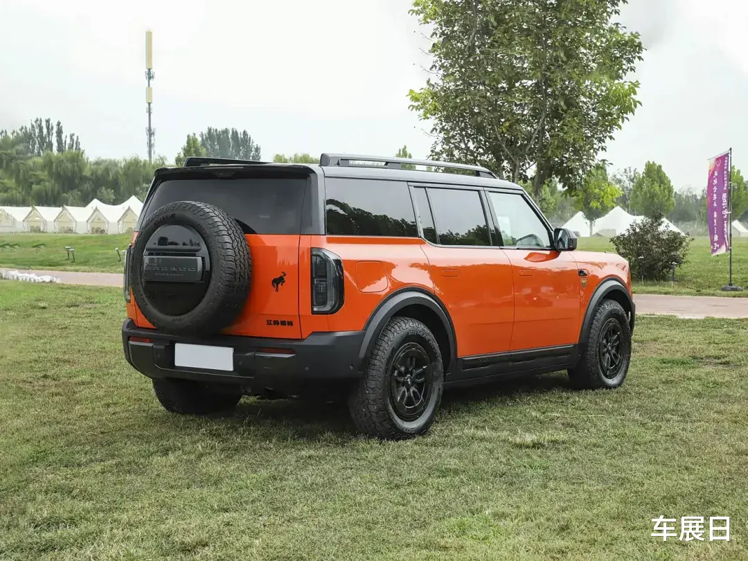外观采用硬派造型,汲取福特Bronco Sport设计思路并进行城市SUV化调整,更时尚年轻,大面积深色护板、前脸和轮圈上的BRONCO字样强化了硬派风格,前机舱盖黑色装饰、外挂备胎和侧开尾门与福特烈马有关联。尺寸方面,长宽高为5025/1960/1825mm,轴距2950mm,涉水深度600mm,接近角30°,离去角32°。