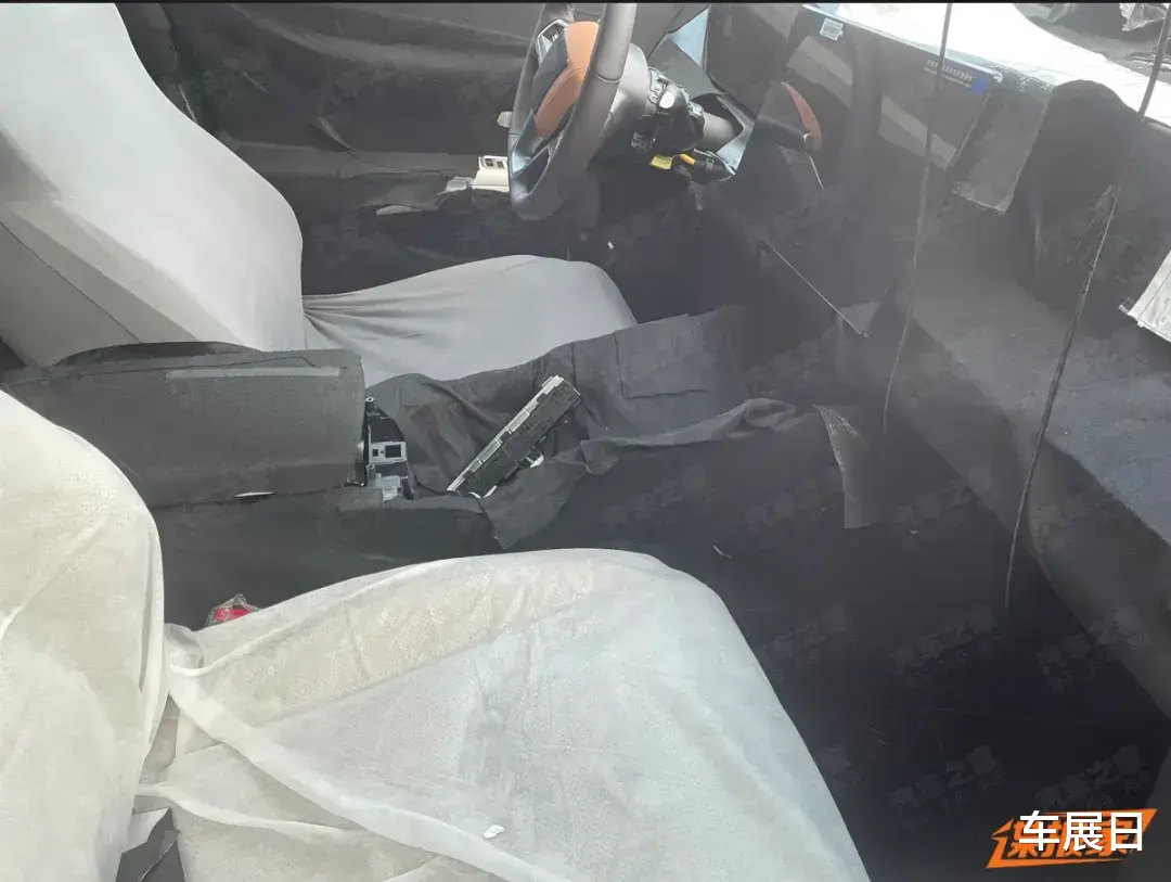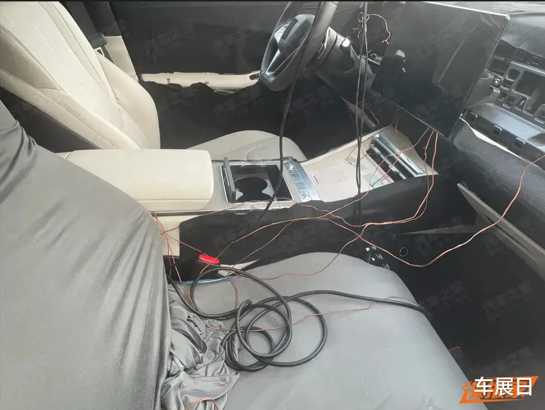 内饰和唐L基本一致,测试车主色调为米色,副驾侧面板未安装,可能有副驾娱乐屏。