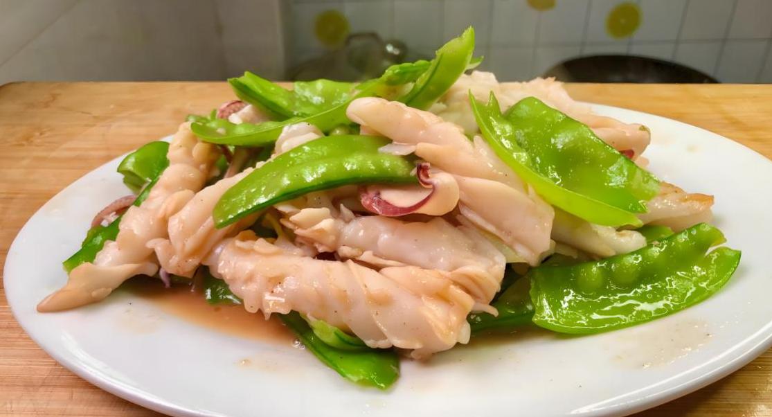 荷兰豆炒鱿鱼就是这么一道,既简单又健康的菜。
