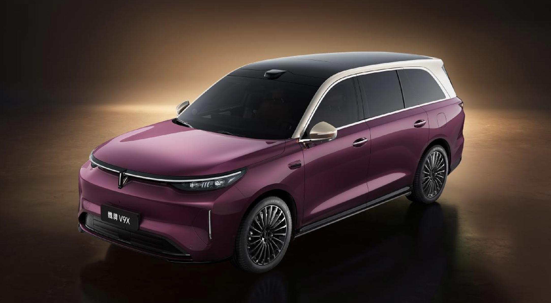 9日,魏牌即将上市的“AI豪华六座旗舰”魏牌V9X在保定“立旗”。