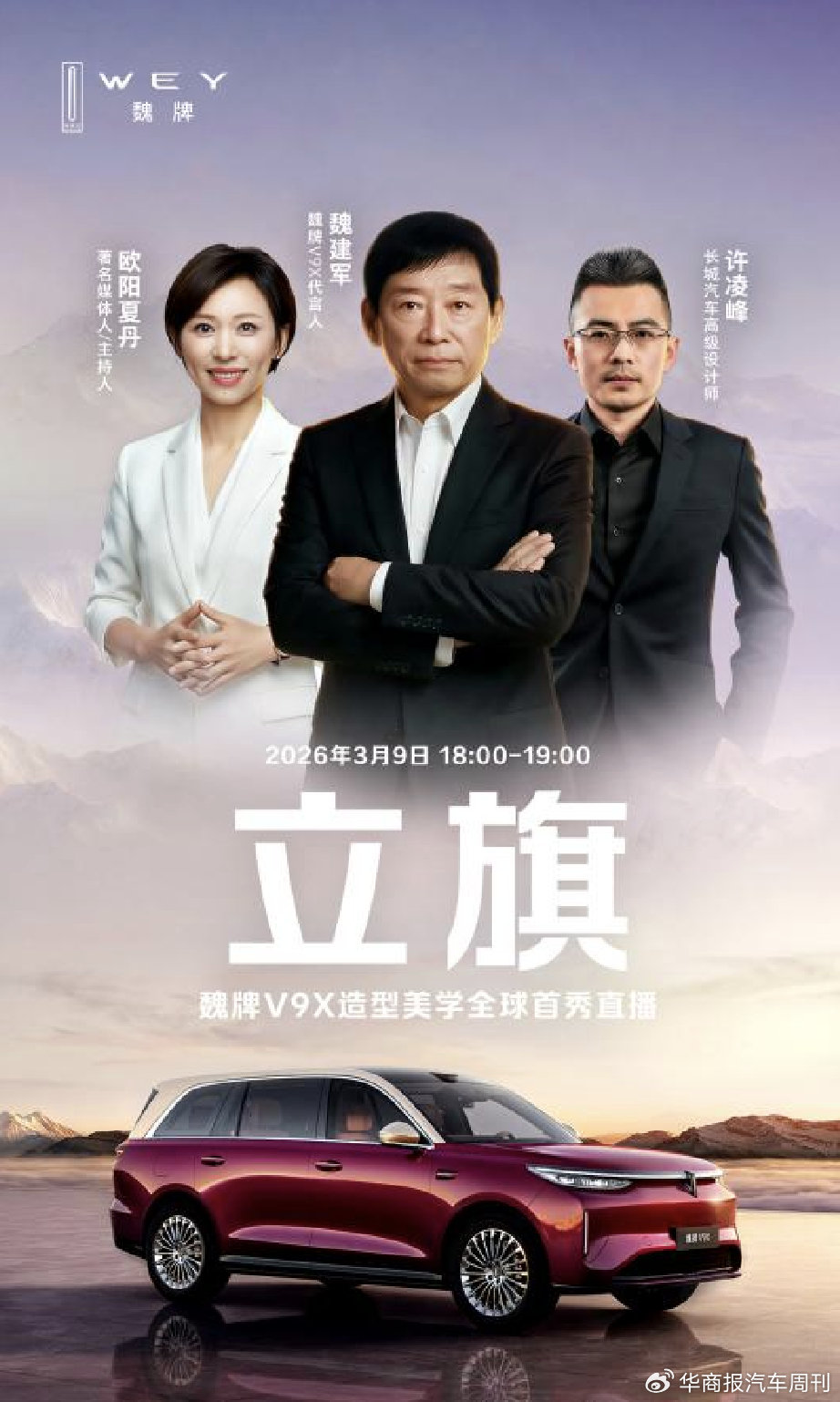 魏建军首次以魏牌V9X代言人身份亮相直播,并与著名媒体人/主持人欧阳夏丹、长城汽车高级设计师许凌峰,从保定直隶总督署大旗杆的精神图腾聊起,打破“豪车出身论”等行业偏见。