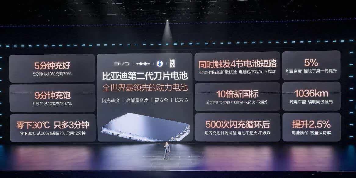 关注第二代刀片电池呢,远超国标的安全,边闪充边针刺,不起火不冒烟,而且是闪充循环500次以后做的测试,可以说是真的懂用户的担心点~这下用得久了也可以放心闪充!更安全,更长寿,更高密度,更快充电!比亚迪真的在带领行业前进!硬核闪充技术树立行业新标杆!没有人比比亚迪更懂电池!