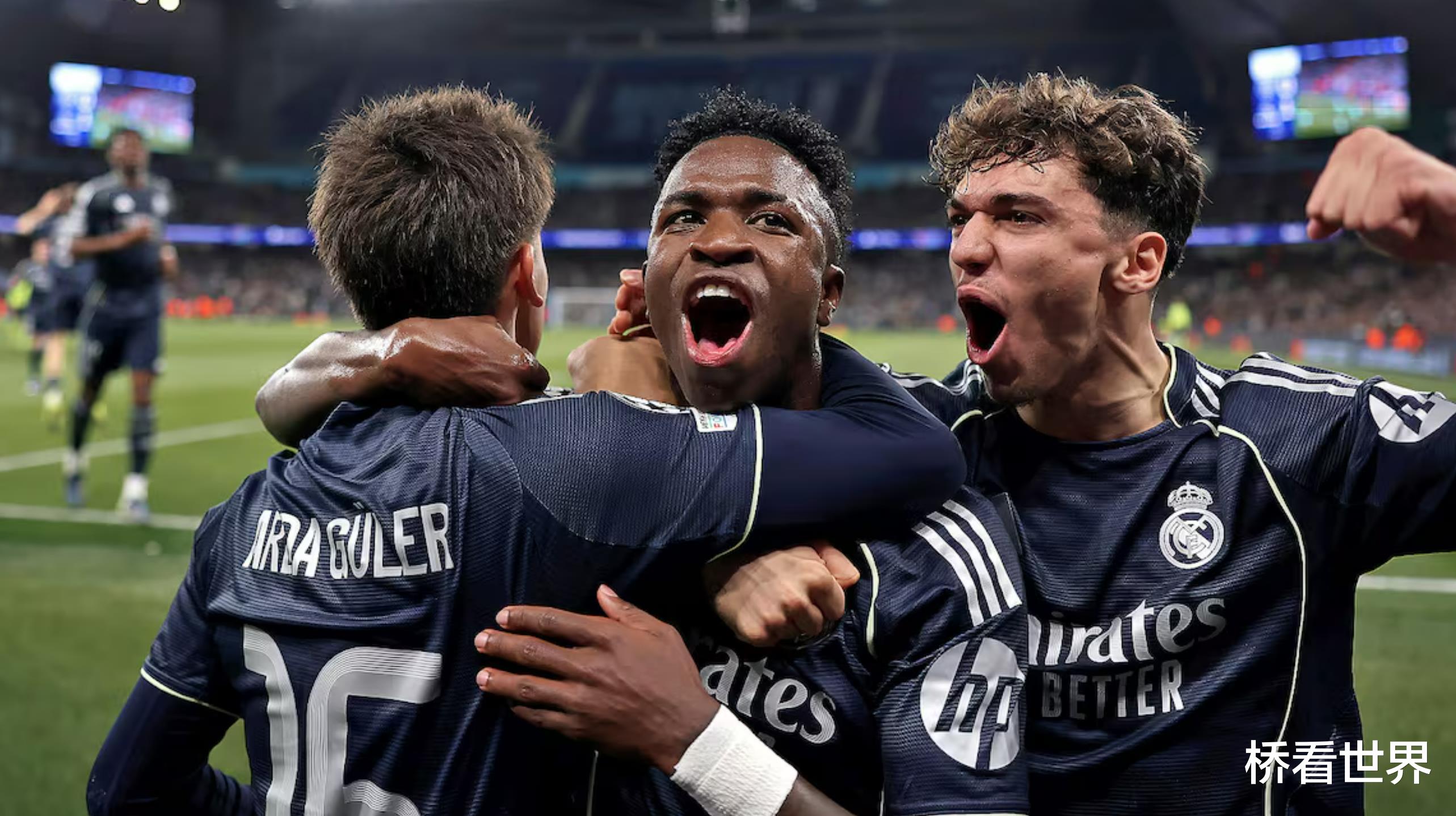 维尼修斯成为“曼城克星”:本场点球冷静命中,补时第 93 分钟接楚阿梅尼传中,禁区内灵巧卸球扫射破门,梅开二度锁定胜局。