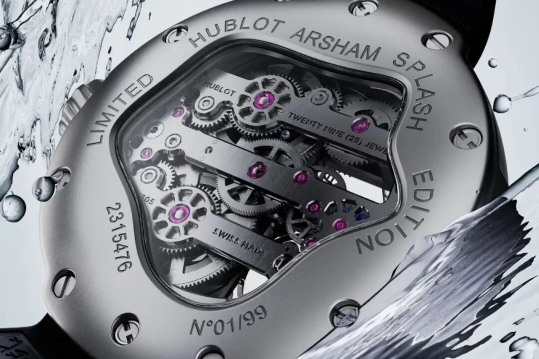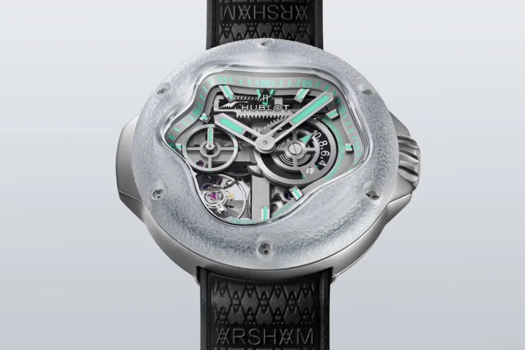 在「形态变形」的赛道上,宇舶(Hublot)与艺术家 Daniel Arsham 的合作堪称典范。今年双方推出力作联名限量腕表,直接把「流动的水花」凝固成可佩戴的机械雕塑,完成从「水滴」到「水花」的形态升级。