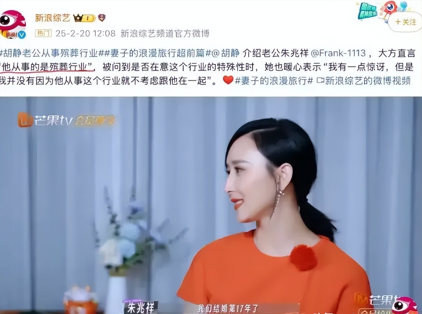 节目里,胡静大方地回应了外界的种种猜测。