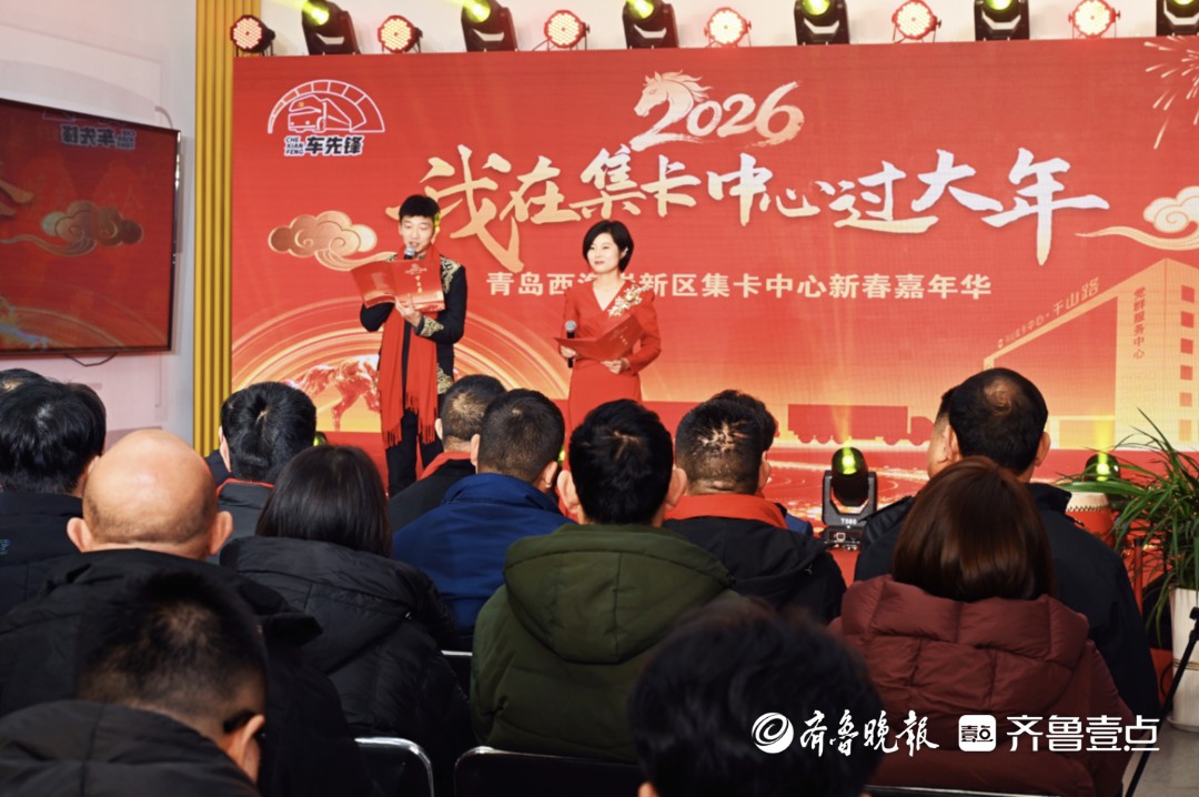 1月26日,“我在集卡中心过大年”2026年新春嘉年华活动在青岛西海岸新区举办,数百名大货车司机、物流行业商户企业及其家人汇聚于此欢度“腊八节”。据悉,近年来青岛西海岸新区为解决大货车司机长期以来面临的停车休息难、找货配货难、权益保障难等问题,创建“车先锋”党建品牌,创新园区集成服务、数字货运平台运营等模式,助力实现港口集疏运能力、城市品质的整体提升。