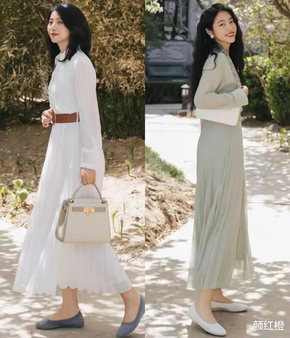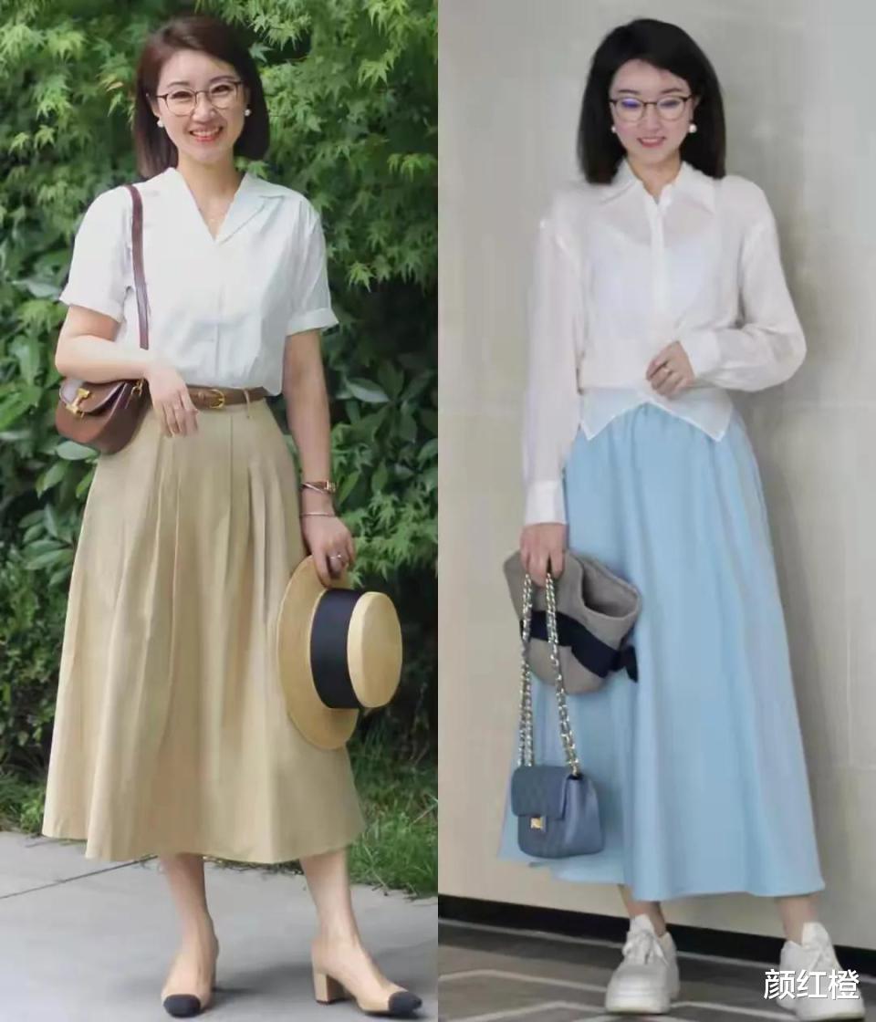 不管你选择的是半身裙还是连衣裙,一定要选择高腰收腰款,这样才能使得穿搭者的身材比例形成三七分,同时,裙摆多选一些a字款式,或者是直筒款式,最好的是伞状的版型,这三种最为遮肉。