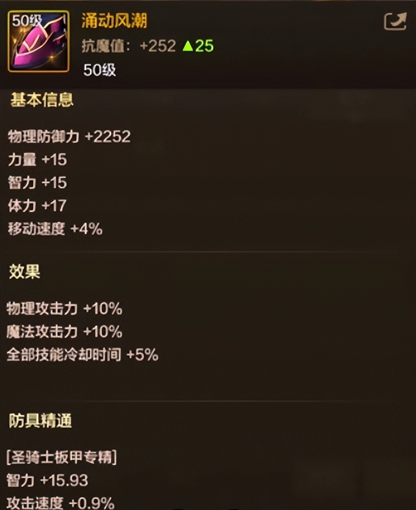第五个是“涌动风潮”,号称目前散搭最强鞋子没有之一,百分之十的物理攻击力和魔法攻击力加成。