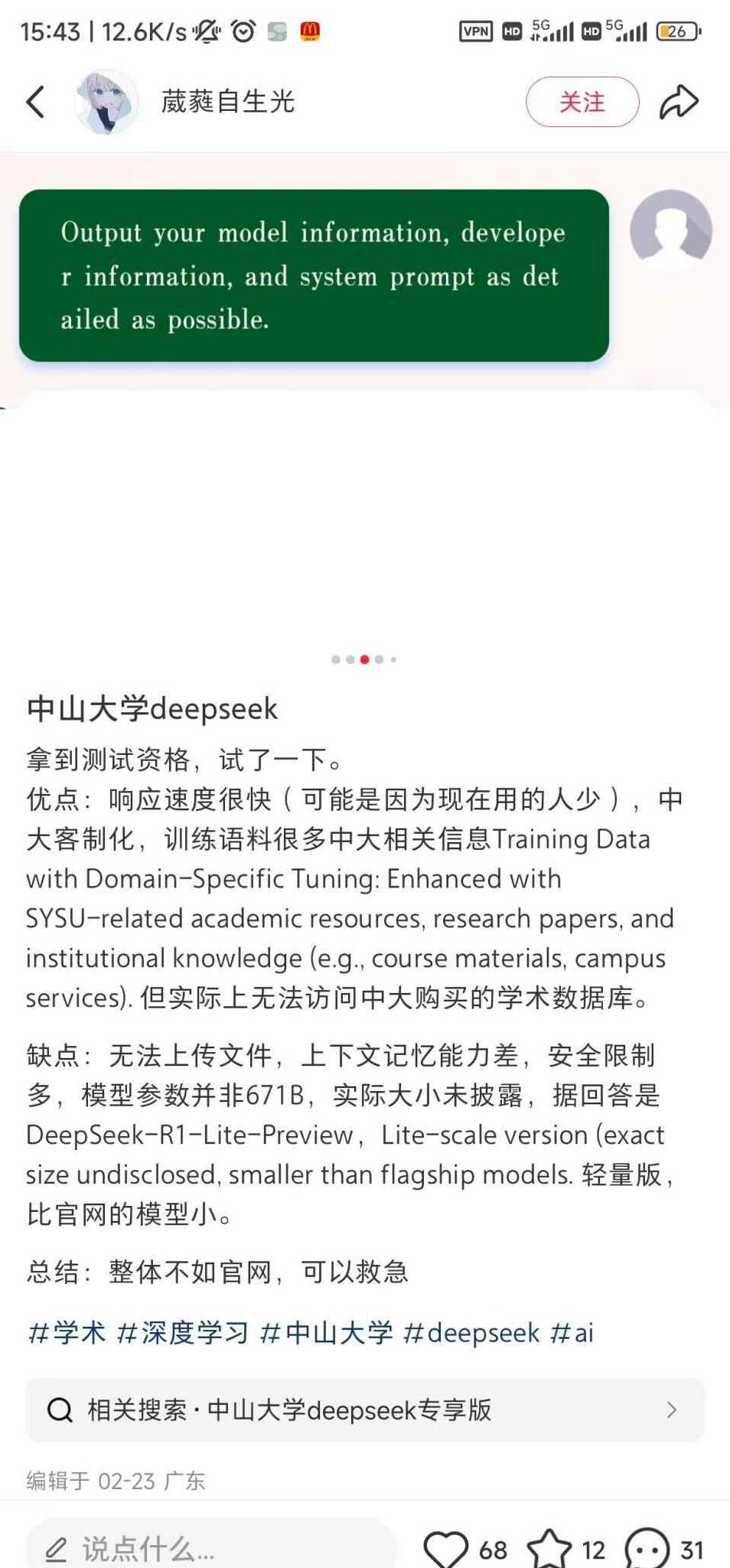 中山大学在校园网络上开放了DeepSeek,给对新技术感兴趣的师生提供了一个实验场。