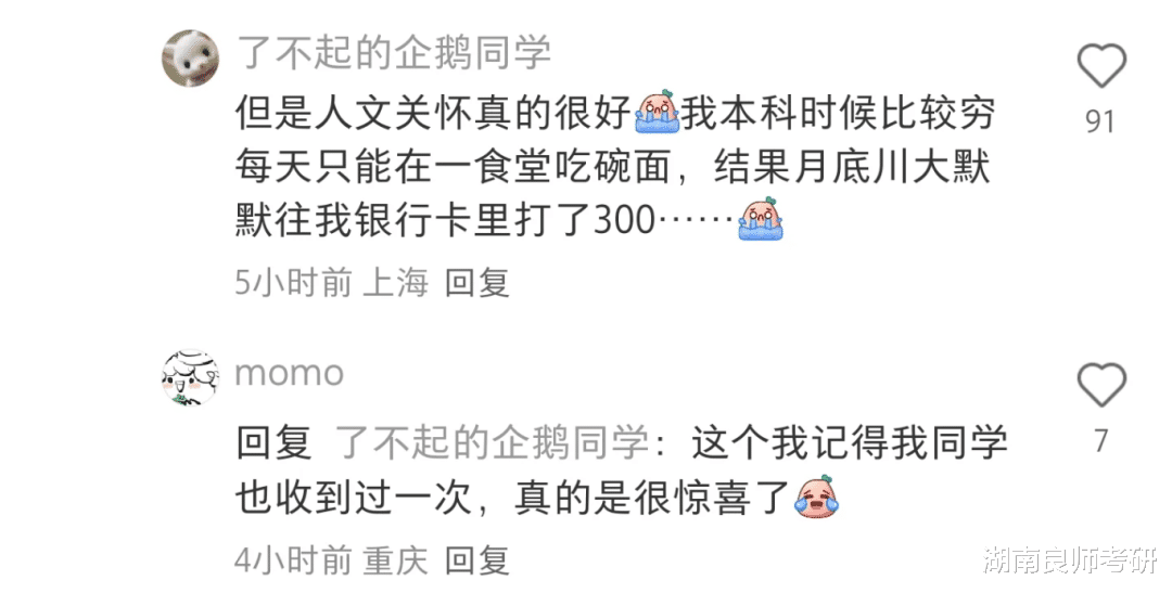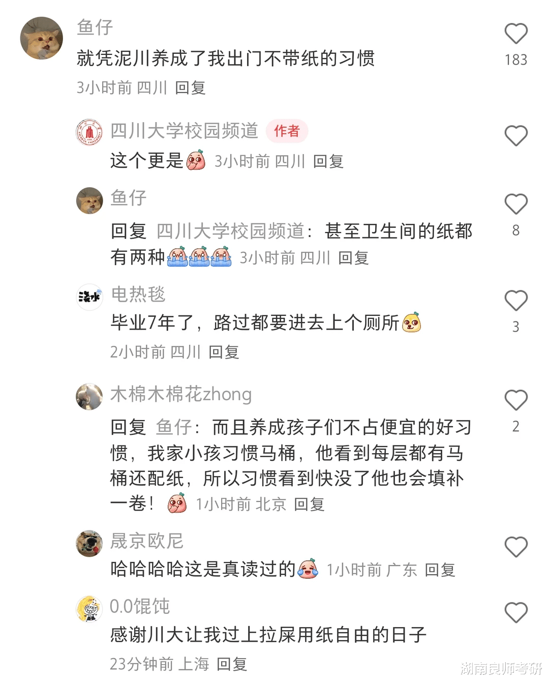 作为小红书“决战985人文关怀之巅”比赛中的冠军,川大在学子心中就是那抹最实在的白月光,从教学楼里永不缺席的厕纸,到从天而降的饭卡补助,再到校园内完备的无障碍设施,毕业多年回想起来,心头仍是暖的。