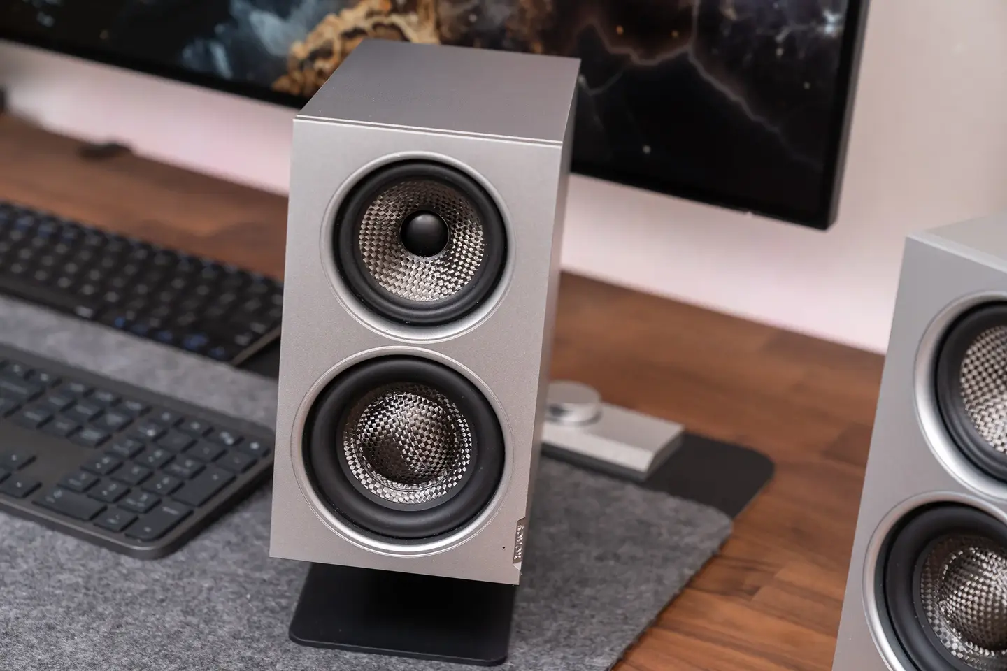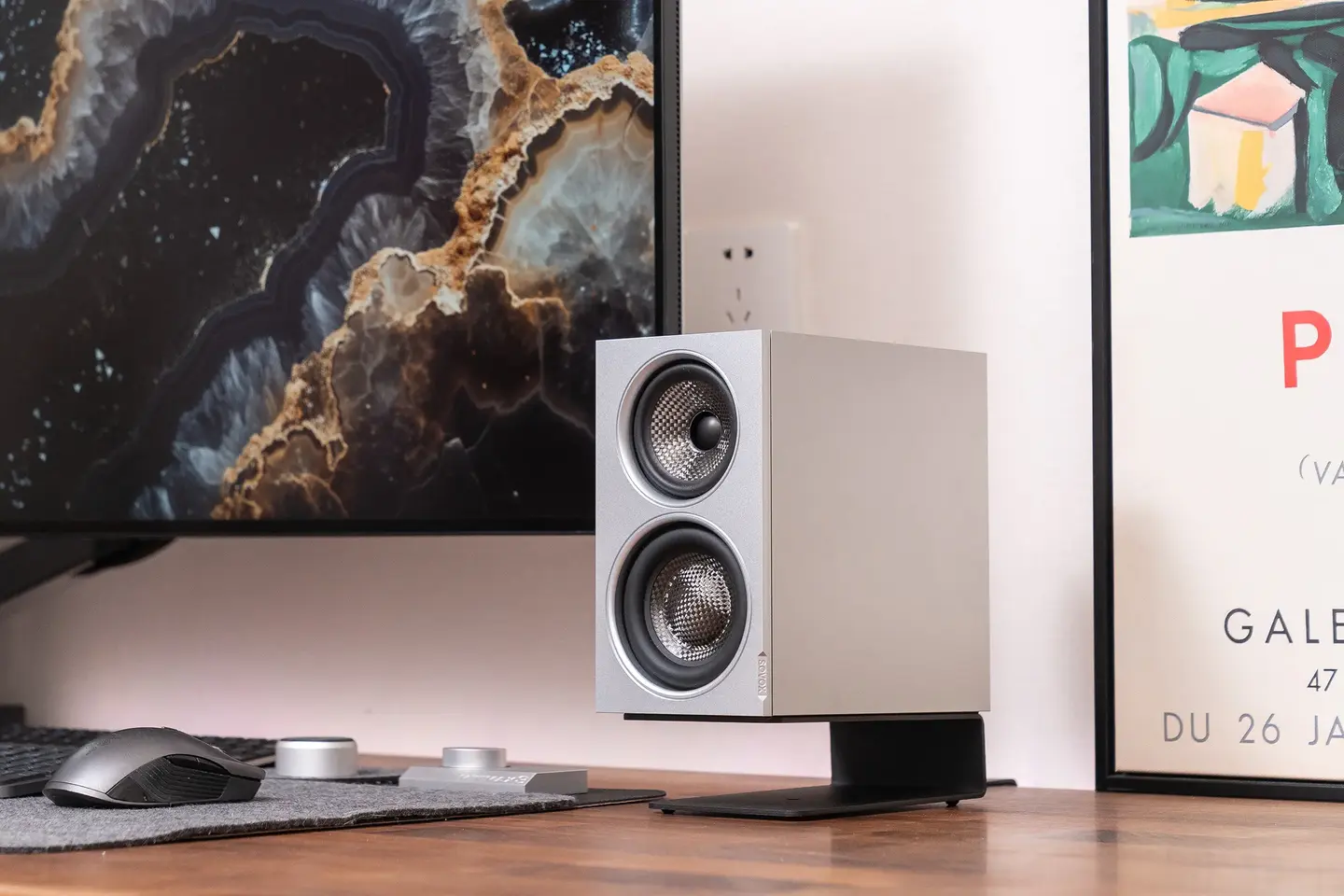 我的主系统是用来认真听音乐的,但我的电脑桌同样需要一个靠谱的“伴侣”。和很多朋友一样,我的桌面已经被显示器、键盘、各种设备占得满满当当。传统的4寸甚至5寸书架箱往桌上一放,视觉上就非常拥挤,更别说近场聆听时,过大的单元和箱体反而容易产生声学上的问题。