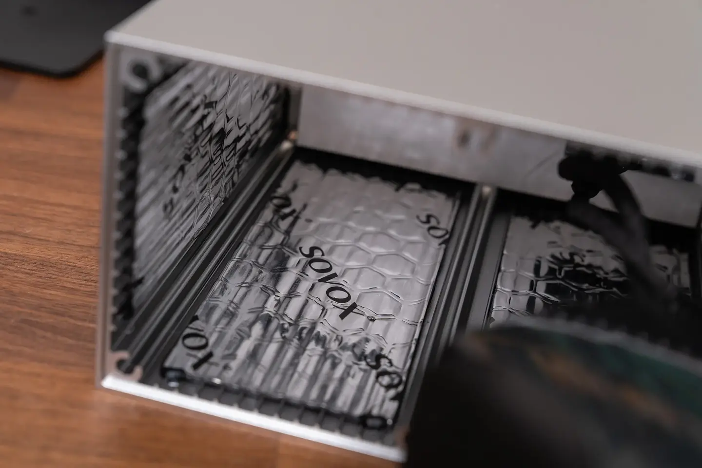 另外,MiniMax3的箱体也没有使用常见的MDF板材,而是采用了成本更高的全铝合金金属箱体,同时为了从抑制金属箱体的谐振,内部还附有阻尼材料,确保声音输出背景更“黑”,细节呈现更为干净利落。