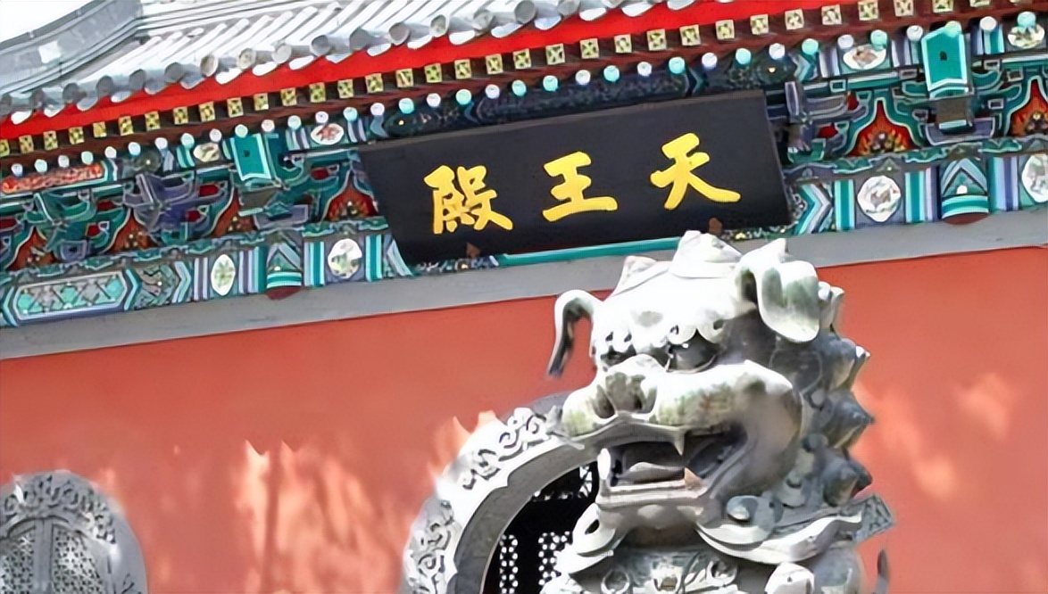 “布袋和尚”铜像为法源寺天王殿中所供奉的“弥勒菩萨”化身,它制作于明代。走进天王殿,便可见高达1米多的“布袋和尚”开心地望向您 ,袒胸露怀,好一幅“喜于言表”之状。位于“布袋和尚”身后的则是“护法神”韦驮的铜像,它与“布袋和尚”同一时期铸造,不过却要高于“布袋和尚”许多,显得极为威严。再看“天王殿”内两边,还立有“四大天王像”。来到这里,不妨“沾“一些“布袋和尚”的喜气回家吧。
