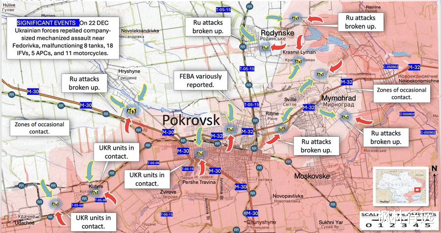 城区方面,尽管俄方多次声称自12月初以来已全面控制该地区,但战争研究所及地理定位影像证实当前仍存在激烈巷战,俄方并未完全占领整个城市。