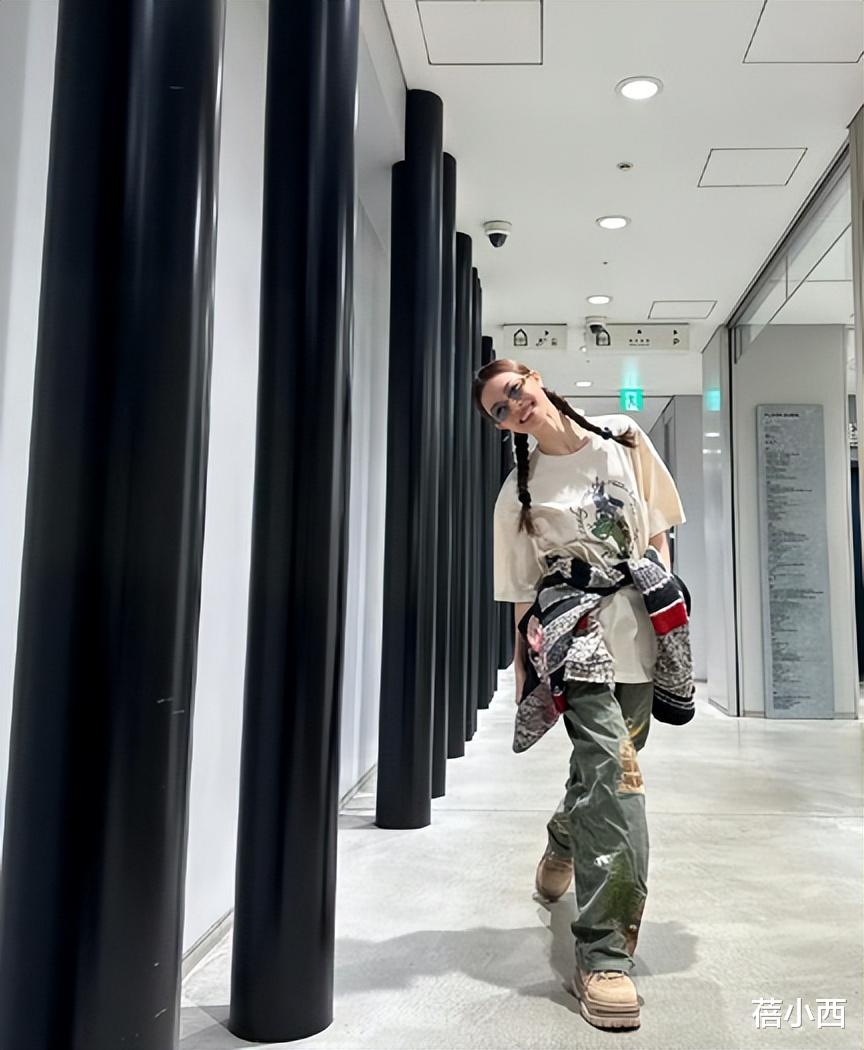 搭配上可爱的双麻花辫,实在是太有辣妹味道了。